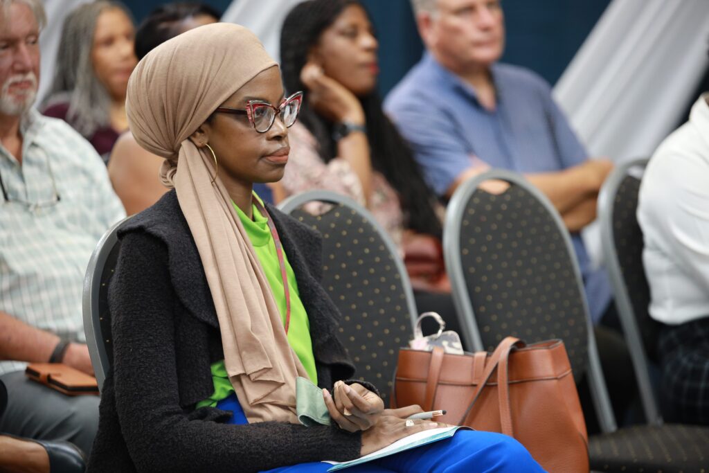 Dr. Patrice Whitley, Head of the Department of Econometrics, listens intently during the presentation on how investors can prepare for a crisis at Sterling Asset Management’s UWI Professor & Senior Staff Mingle.