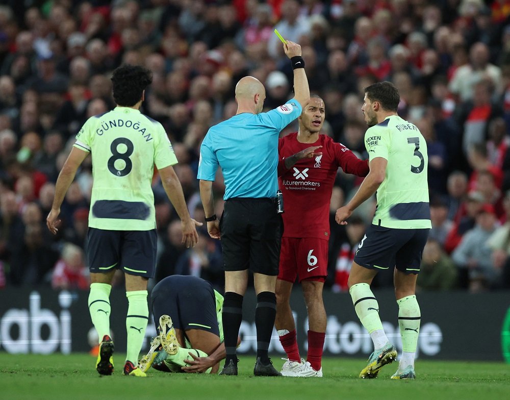 City coach Pep Guardiola was furious on the touchline as the referee was asked to have another look and even more so when it was ruled out, turning around to remonstrate with several Liverpool supporters in the stands.