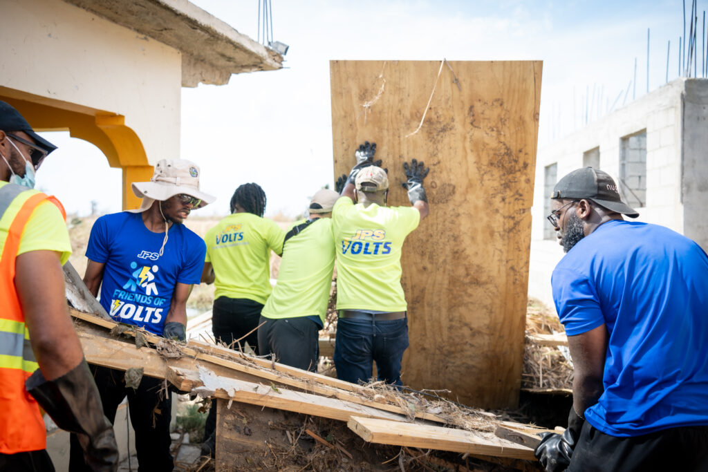 The JPS Foundation contributed 40 personnel to the operation, working across Black River, Parottee, Slipe and Punches. The team cleared three damaged homes, supported the rebuilding of two others and removed dangerous wires and poles to help secure affected households.