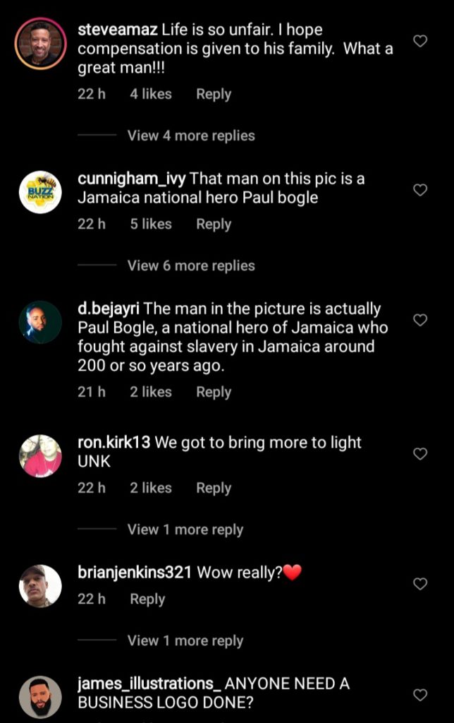 Another, @d.bejayri, said: “The man in the picture is Paul Bogle, a national hero of Jamaica who fought against slavery in Jamaica around 200 years or so.”