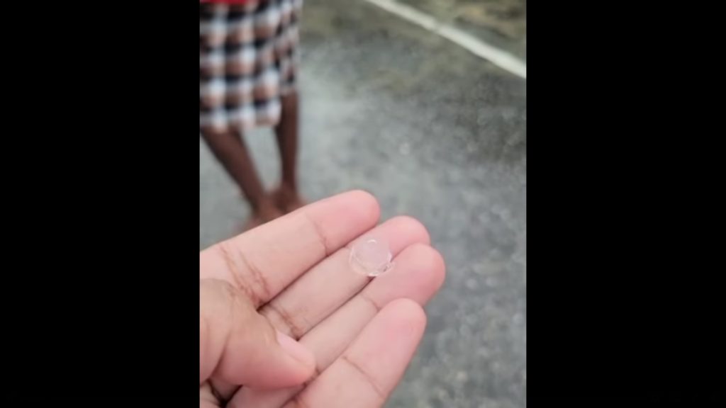 The pea-sized stones appeared either clear or semi-transparent as Trinbagonians elsewhere in the twin-island republic witnessed no rains or scattered showers only.
