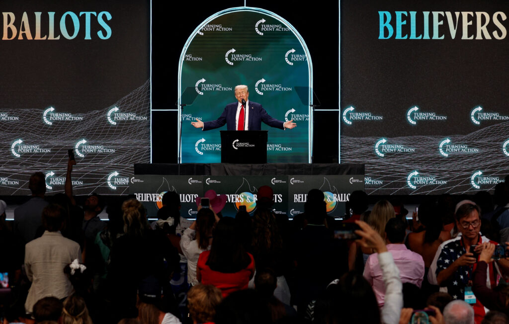 Trump was speaking at an event organized by the conservative group Turning Point Action in West Palm Beach, Florida.