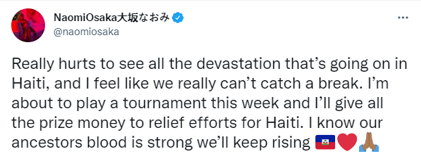 “Really hurts to see all the devastation that’s going on in Haiti, and I feel like we really can’t catch a break,” Osaka, who is the daughter of a Haitian father and Japanese mother, said in a tweet on Saturday (August 14).