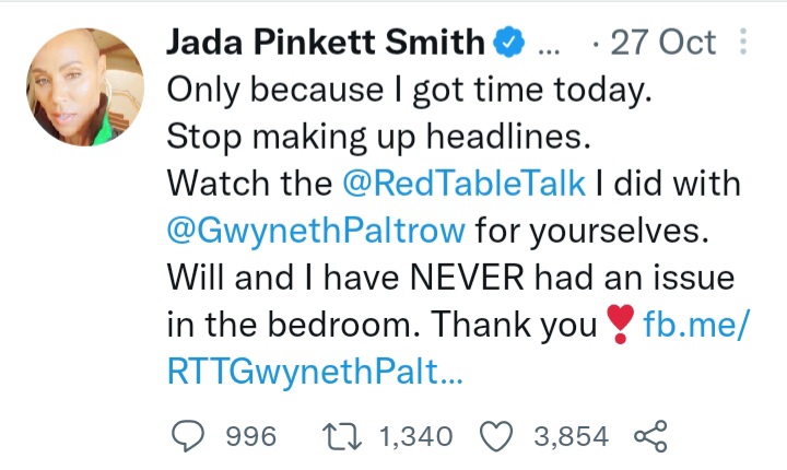 Since then, Will and Jada have taken to different mediums in an effort to clear the apparent misconception about their bedroom life.