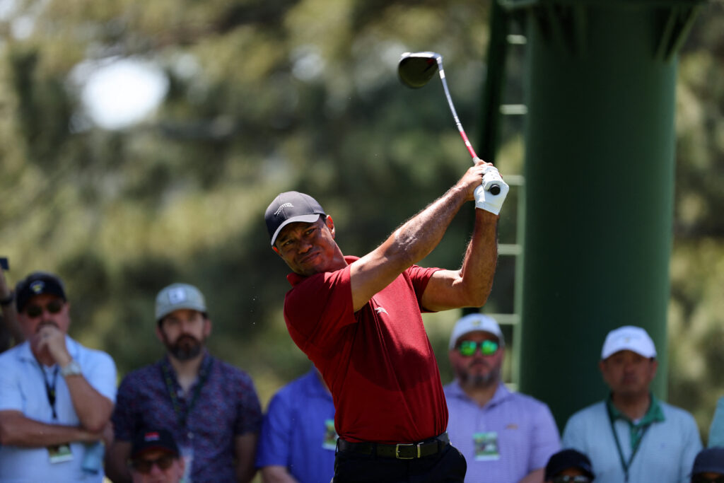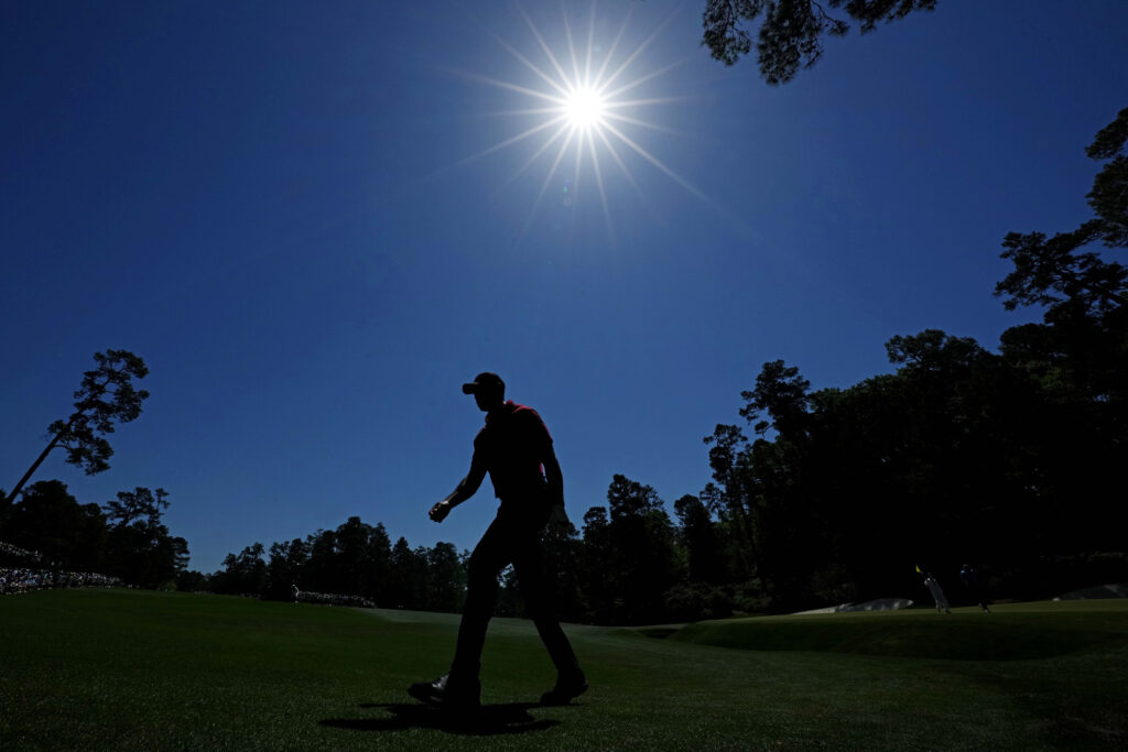 By the time he arrived at the picturesque par-three 12th hole in the heart of Amen Corner, a sweat-soaked Woods tipped his black cap to the packed gallery who greeted him with applause and cheers of “Let’s go, Tiger!”